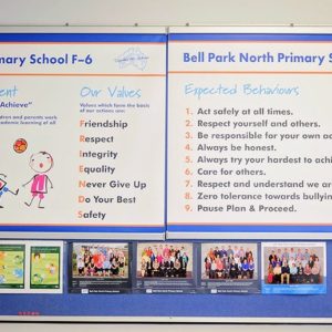 As such, we offer re-skin services so you can utilise your banner bases over and over again as your Banner content changes over time. Our Banner products can be utilised in a number of different ways, from branding and identity throughout the school, to in classroom uses such as anti-bullying, culture or curriculum assistance uses.
